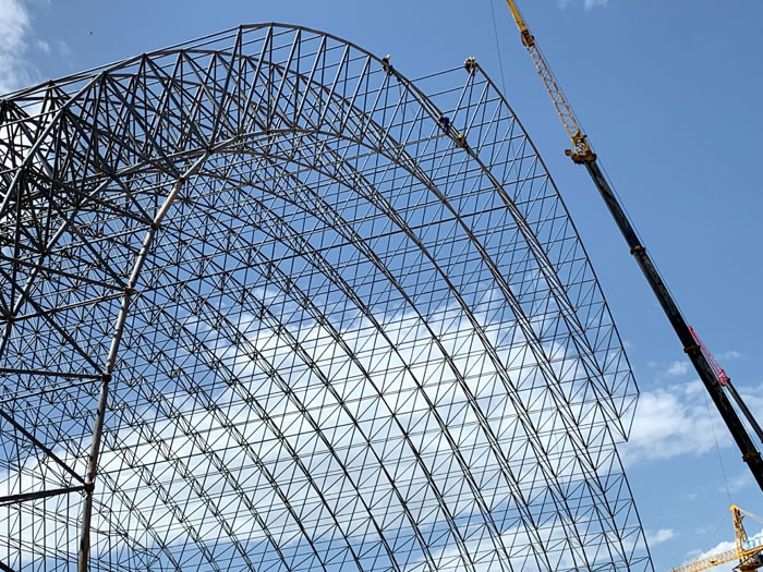 (2)网架加工前应对现场尺寸进行复测,确认无误后方可进行加工、安装;网架制作、运输、安装应遵守《空间网格结构技术规程》JGJ7-2010、《钢网架广安螺栓球节点》JG/T 10-2009、《钢网架广安螺栓球节点用高强度螺栓》 GB/T 16939-2016、《广安钢结构广安工程广安施工规范》 GB50755-2012、《广安钢结构广安工程施工质量验收标准》 GB50205-2020。